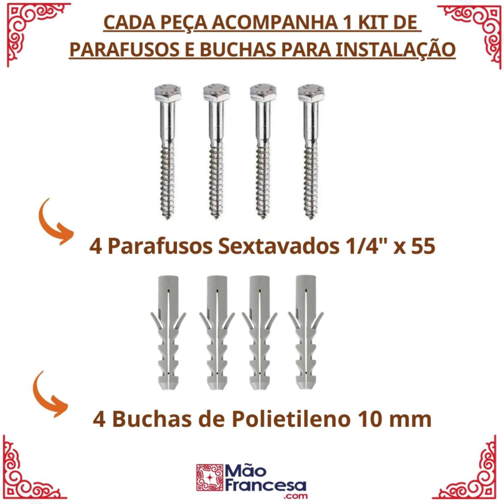 - Conteúdo: 1 suporte + 4 parafusos sextavados ¼”x55mm e 4 buchas de nylon nº 10