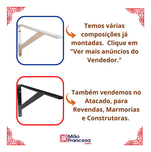 Mão Francesa Reforçada 25cm 48un Kit Suporte Para Prateleira